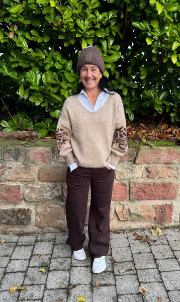 Diese schokobraune Jeans vereint Komfort und Stil in einem. Dank des breiten, elastischen Gummibunds sitzt sie perfekt und bietet hohen Tragekomfort – ganz ohne einengende Knöpfe oder Reißverschlüsse.