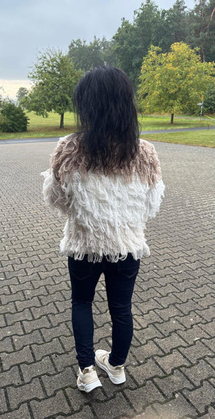 Ein kuscheliges Must-Have für die kühleren Tage! Dieser besondere Cardigan begeistert durch seine trendige Loop-Strick-Optik mit Fransen-Details und harmonischen Naturtönen in Beige, Creme und Weiß.