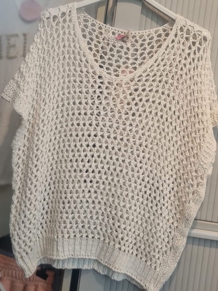 • Luftiges Lochmuster, Umrandung in Kontraststrick