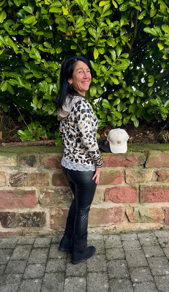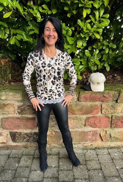 ✨ Ein femininer Feinstrickpullover mit modischem Leo-Flair – perfekt für stilvolle Casual-Looks