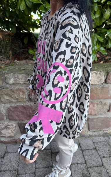 Oversize Sweatshirt – Leo Print mit Pinken-Details