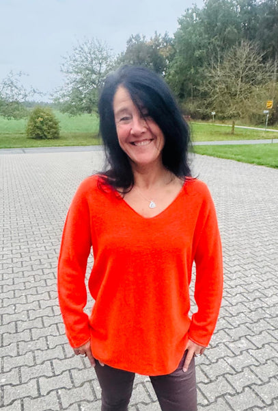 Dieser Pullover ist ein echter Allrounder für jede Jahreszeit! Der lässig fallende Schnitt mit leicht abgerundetem Saum sorgt für eine feminine Silhouette und ein besonders angenehmes Tragegefühl. Durch den V-Ausschnitt lässt sich der Pullover vielseitig kombinieren – elegant mit Bluse darunter oder ganz casual zu Jeans und Sneakern.