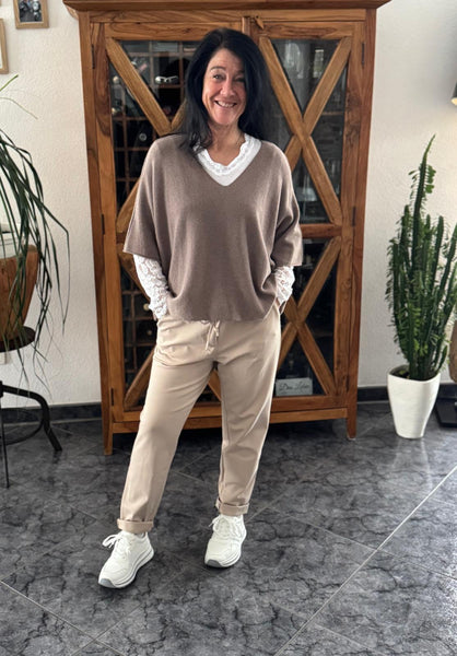 Der Pullover fällt weich, trägt sich angenehm und bietet durch seine Form viel Bewegungsfreiheit. Ein schönes Basic, das in keinem Kleiderschrank fehlen sollte!