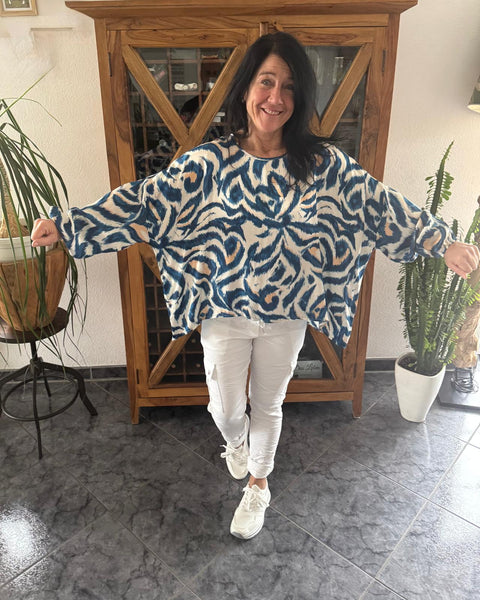 Diese gerade geschnittene Bluse besticht durch ihre Leichtigkeit und den angenehm fließenden Stoff aus 100 % Viskose. Der Rundhalsausschnitt sorgt für einen schlichten, femininen Look, während der Gummizug an den Ärmeln perfekt ist, um sie lässig hochzuschieben.