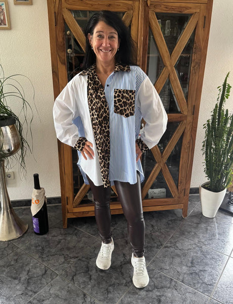 Oversize Bluse im Mustermix – Streifen trifft Leo-Print