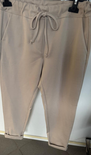 Unsere bequeme Basic-Jogpants ist der perfekte Allrounder nicht nur für entspannte Tage! Ausgestattet mit zwei praktischen Eingrifftaschen, einem elastischen Bund und einem Zugband zum Binden, bietet sie optimalen Komfort und Passform. Der Schnitt ist am Bein oben etwas weiter und verläuft nach unten hin schmaler, was für einen modernen, sportlichen Look sorgt. Dank des elastischen Materials passt sich die Jogpants perfekt an und bleibt immer in Form – ideal für Freizeit, Homewear oder für chic. Ein Must-Have für alle, die Komfort und Stil kombinieren möchten