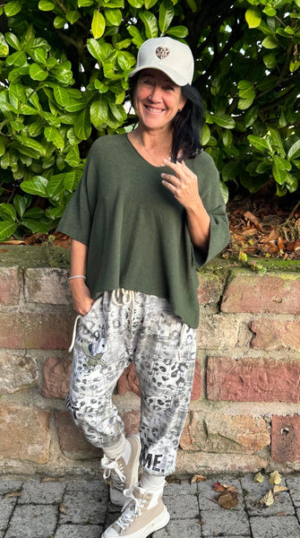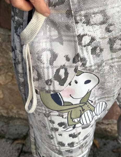 Stylische Jogpants mit trendigem Allover-Print und verspieltem Snoopy-Detail. Der etwas baggy geschnittene Style sorgt für einen lässigen Look und hohen Tragekomfort. Der elastische Bund mit Kordelzug, das breite Bündchen unten und die weiche Materialmischung machen diese Hose zum perfekten Begleiter für Freizeit und Alltag.