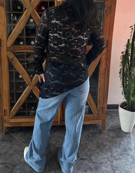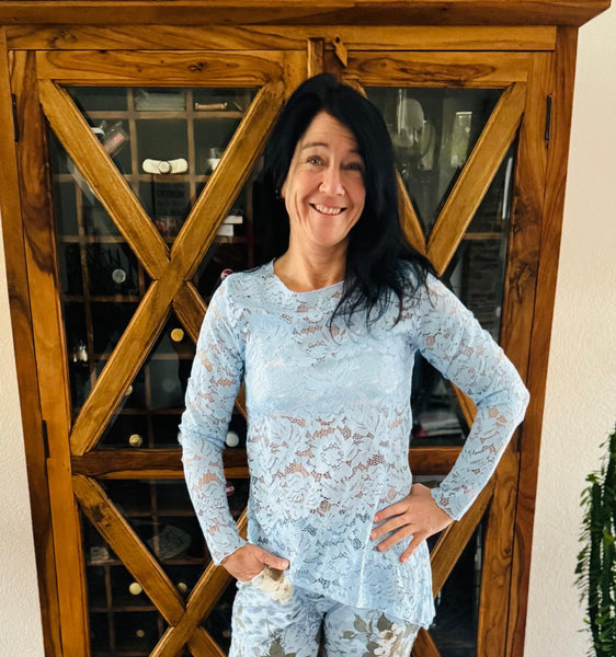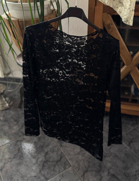 Dieses traumhaft schöne Longshirt aus zarter Spitze ist ein echter Hingucker für jeden Anlass. Der asymmetrische Schnitt verleiht dem Oberteil eine moderne Note, während das florale Spitzenmuster für feminine Eleganz sorgt.