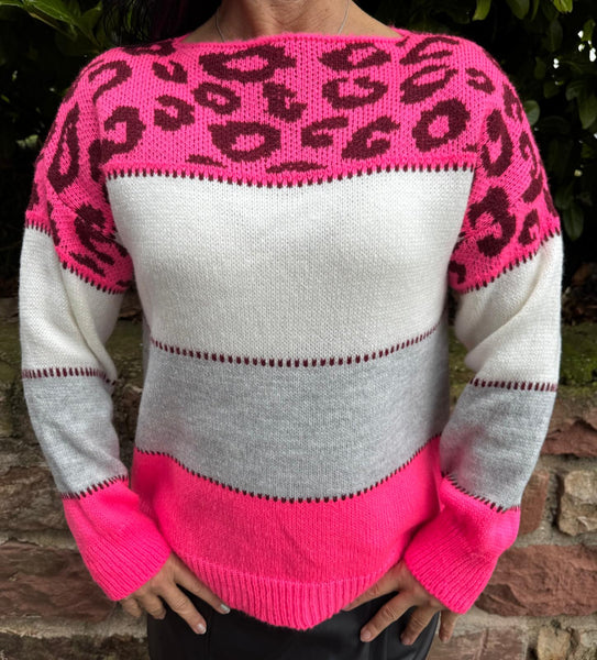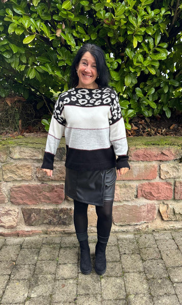 Strickpullover mit Mustermix & Farbbordüren
