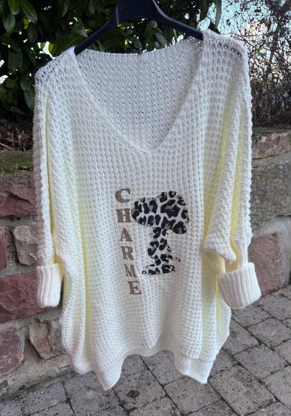 Strickpullover mit V-Ausschnitt + Snoopy Druck