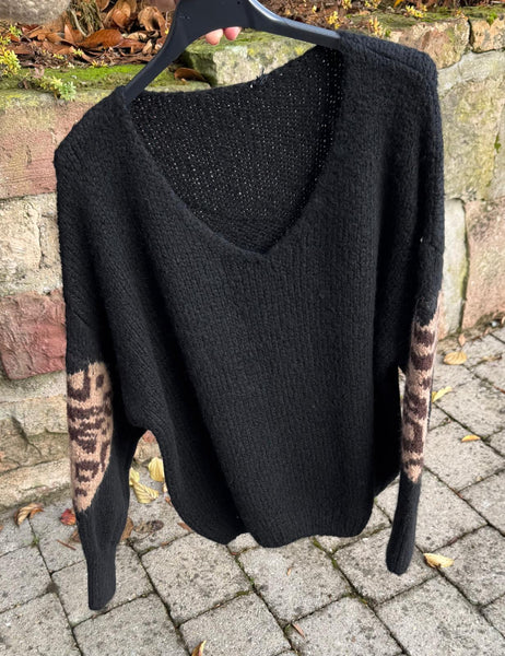 Ein kuscheliger Pullover mit trendigem Leo-Akzent – perfekt für stylische Alltagslooks oder gemütliche Stunden zu Hause. 🖤✨